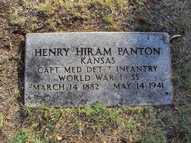 Hiram Panton 14 Mar 1882 - 14 May 1941 Kansas - Capt Med Det 7 Infantry World War I SS Dixie Lee Panton wife of Dr. H. H. Panton