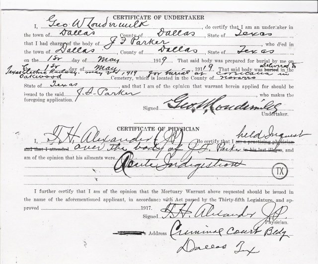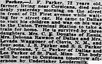 sons, J. S. Parker and S. S. Parker of Corsicana, T. L. Parker of Dallas and Lee
