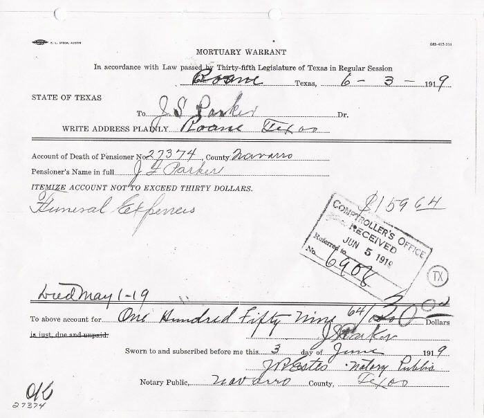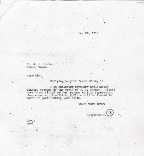 will be forwarded to Corsicana for burial by Undertaker Loudermilk. Mr.