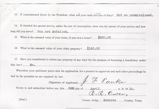 area of Navarro County since that time. She is buried in the far west side of Oakwood Cemetery in Corsicana beside her husband and her son (James Solomon) and his wife.