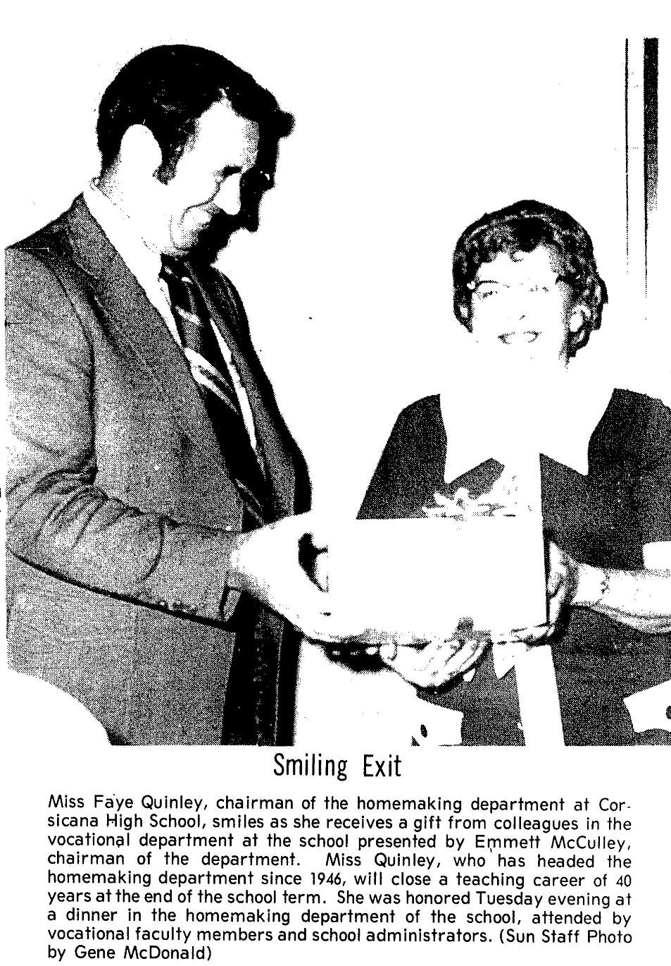 She was also chairwoman of the homemaking department at Corsicana High