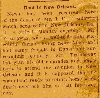son, Joel B. Treadaway. Clipping from Waxahachie Weekly