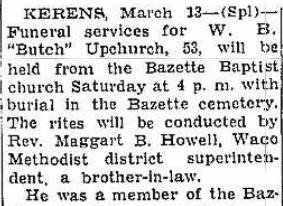 Weldon Bert "Butch" Upchurch Navarro County, Texas
