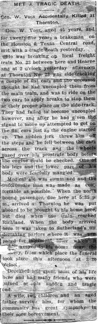 Geo. W. Voss, aged 45 years and for twenty five years a brakeman on the Houston