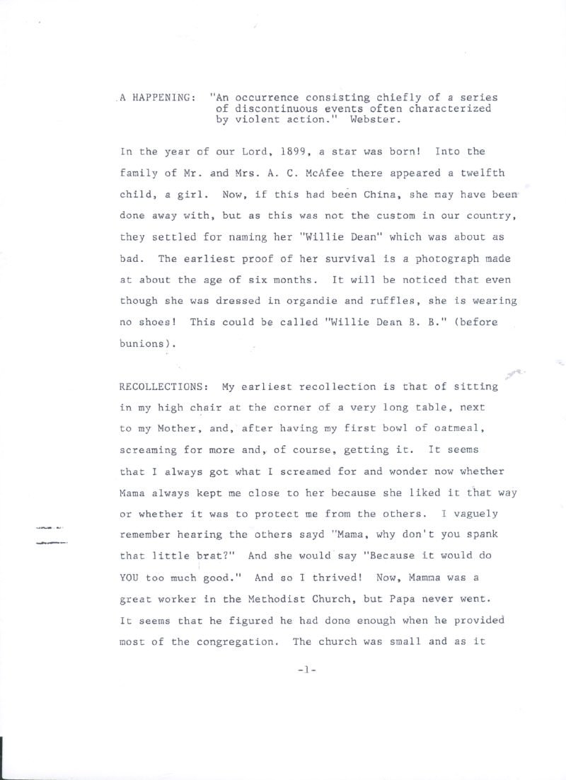 Memoirs of Willie Dean (McAfee)