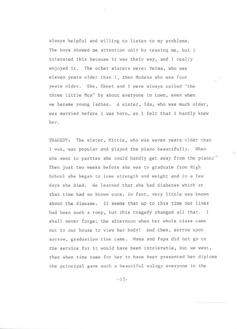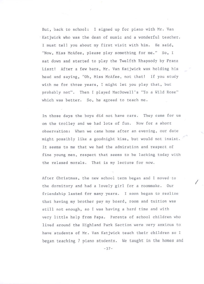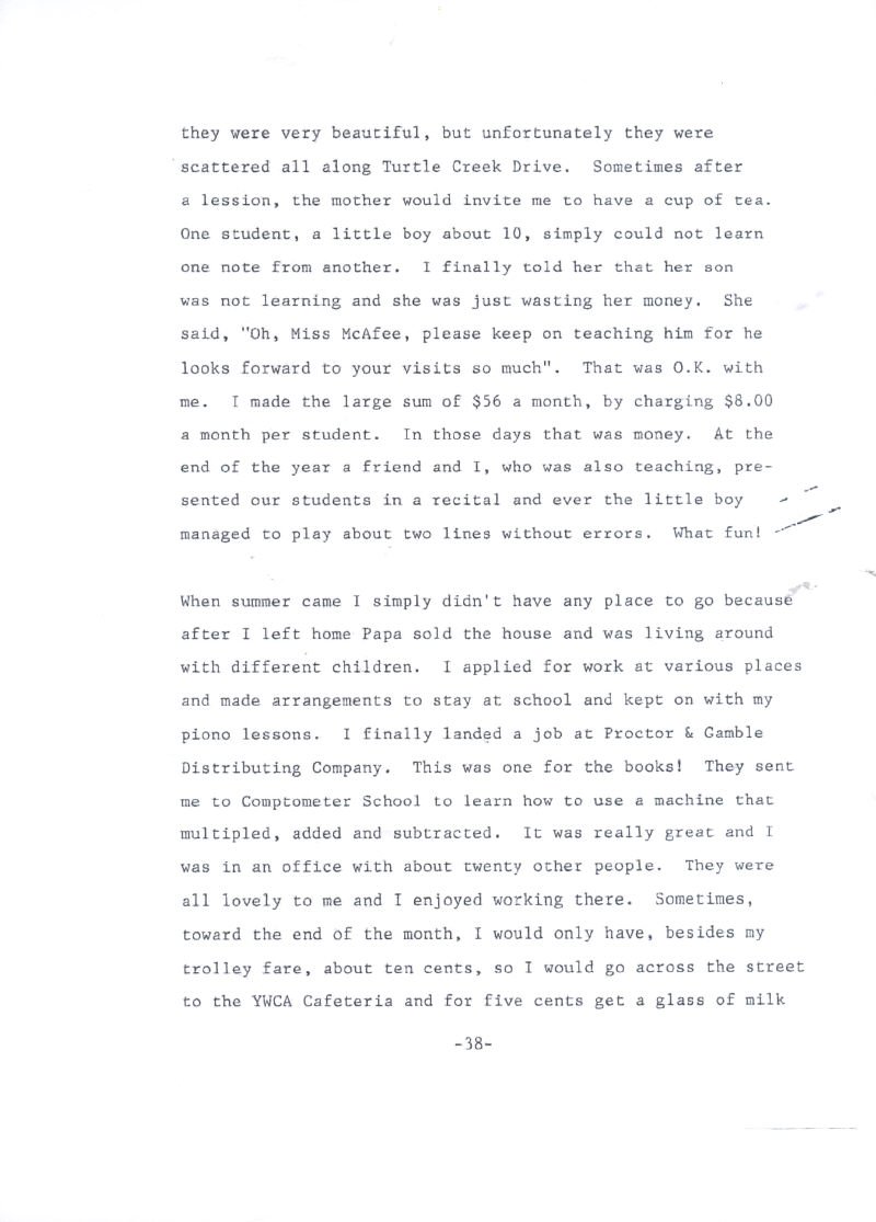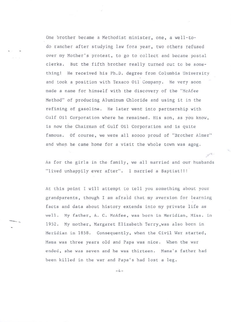 Mrs. Harris before her marriage to Mr. Harris, Miss Willie Dean McAfee