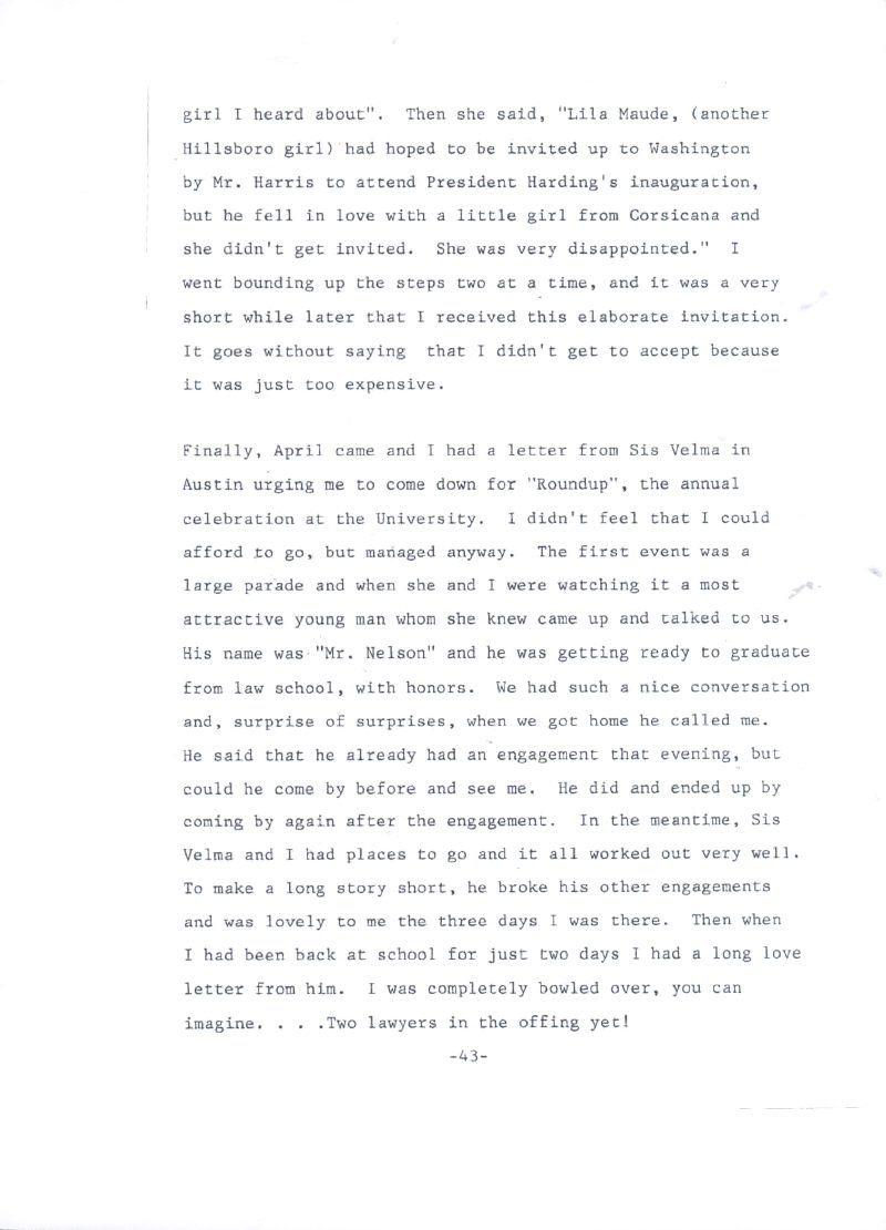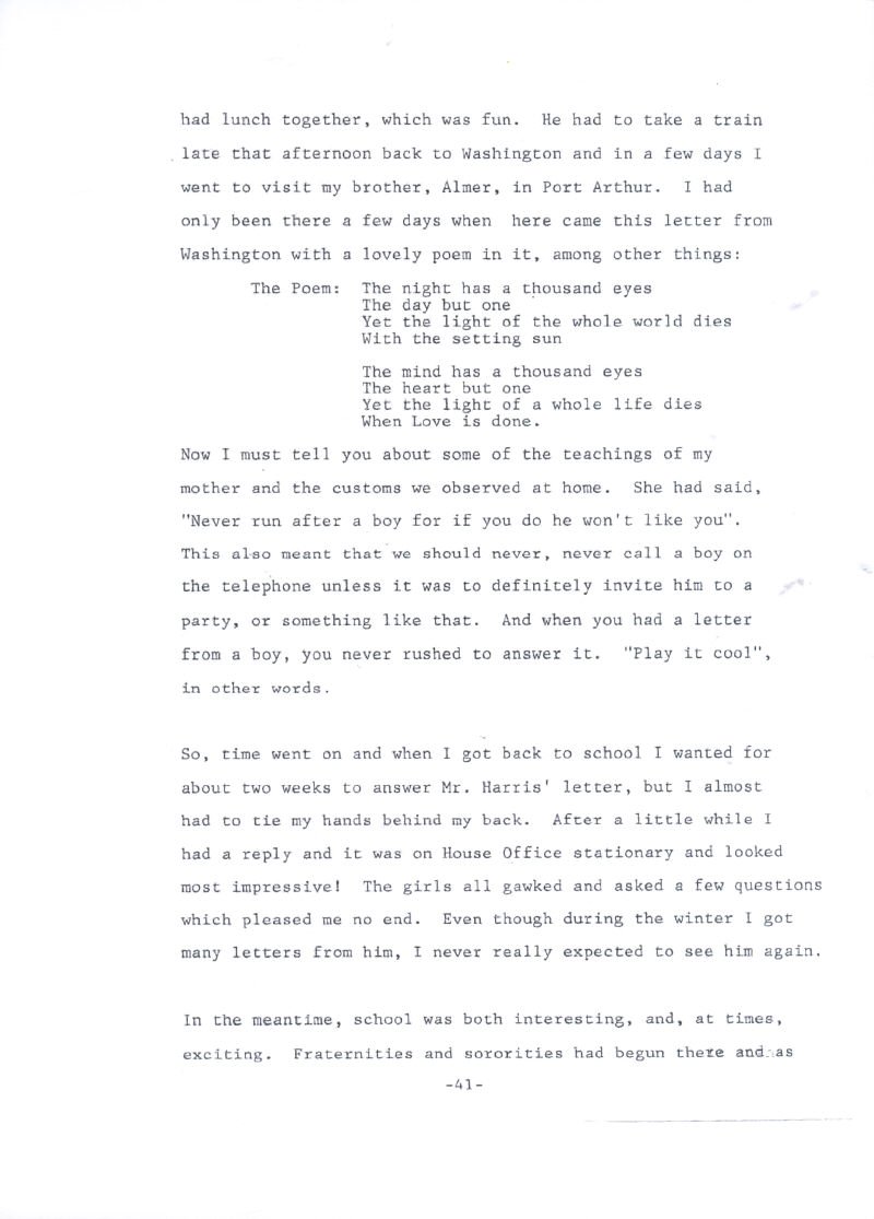 1922 as they wife of Brantly Harris, an attorney and later mayor of