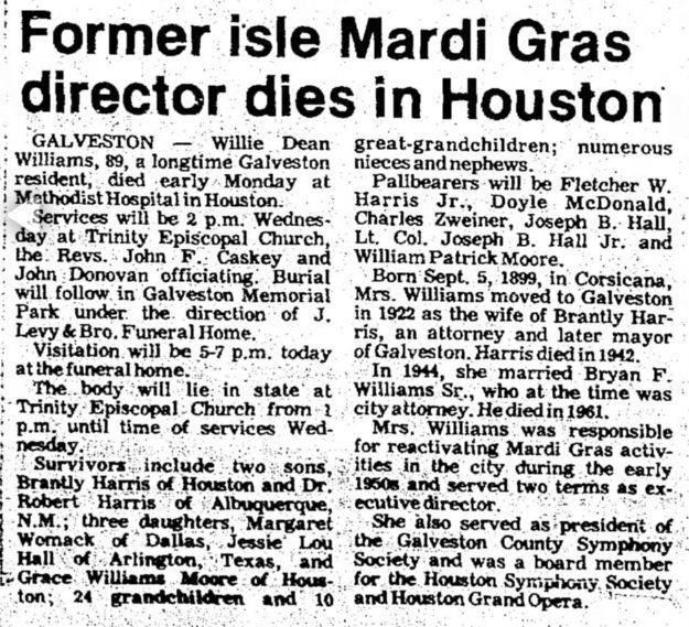 GALVESTON - Willie Dean Williams, 89, a longime Galveston resident, died