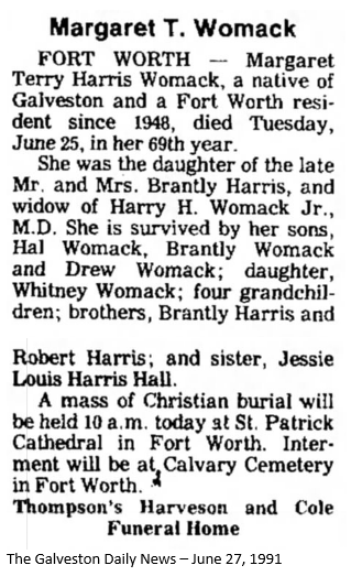 MARGARET HARRIS WOMACK FEBRUARY 7, 1923 - JUNE 25, 1991