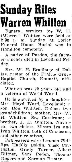 Iva and Ivan Whitten, both of Corsicana, and other relatives.