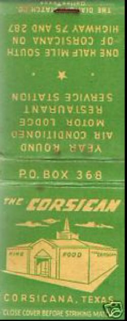 Matchbook Cover from The Corsican Motor Lodge, Corsicana, TX