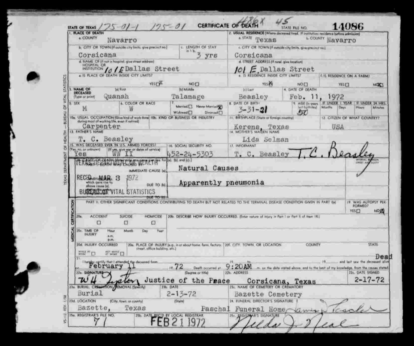 Quanah Talmage Beasley |