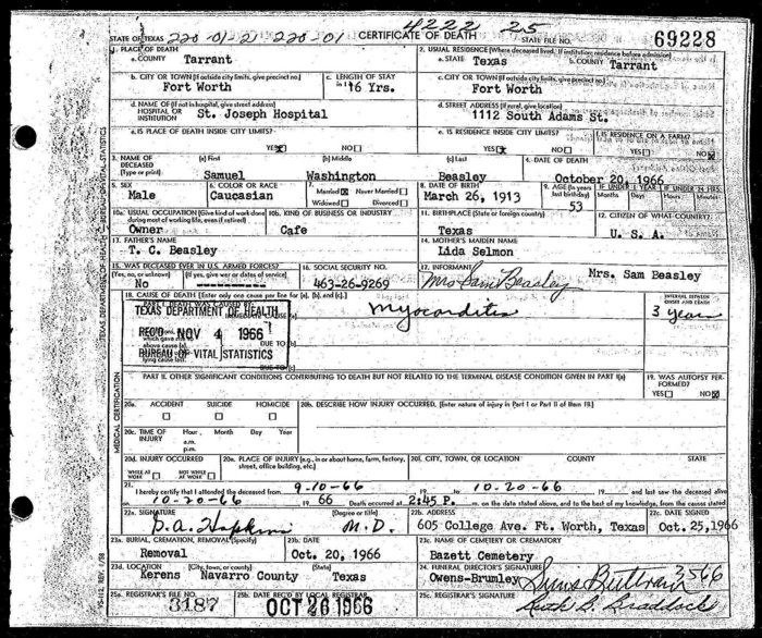 h/o Era Mae (Walker) Beasley [bur at Oakwood Cemetery];