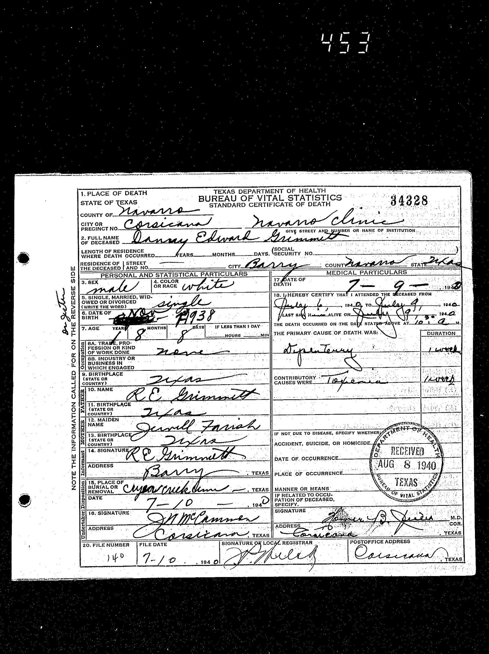 Corsicana—Could be Grange Hall or Black Hills) (there is a marriage record for
