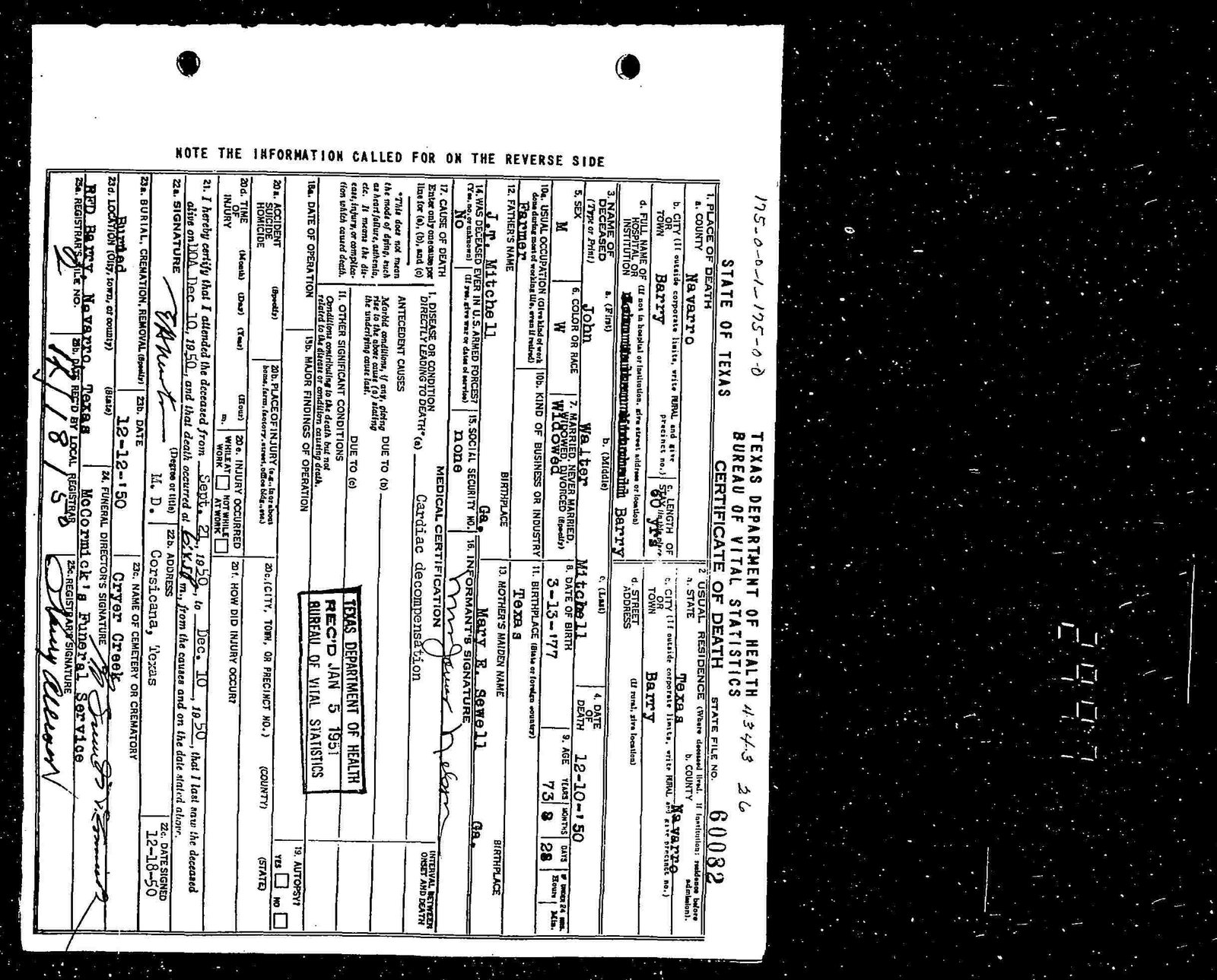 h/o Mary Elizabeth "Bessie" Mitchell; s/o