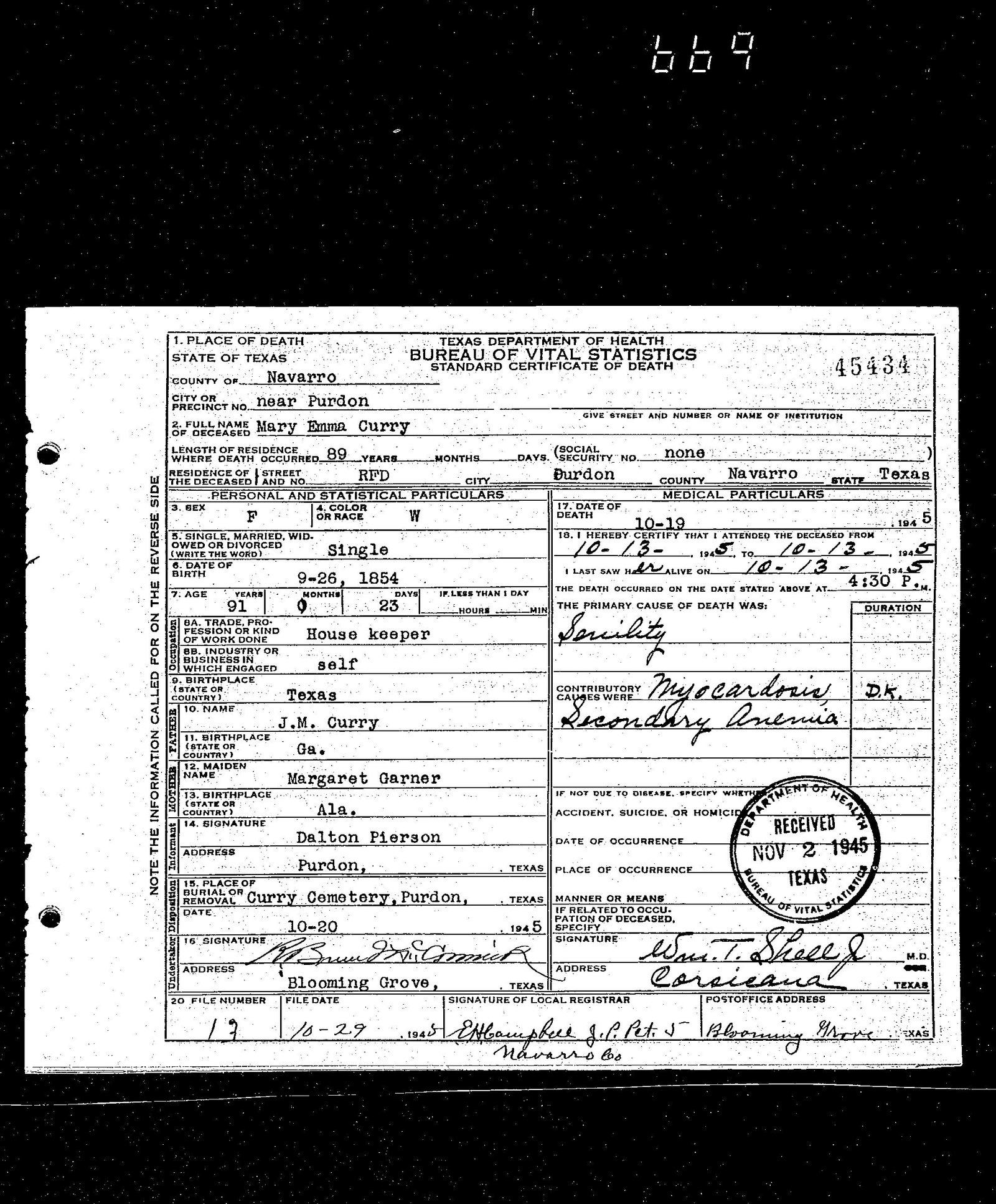 NEVER MARRIED; d/o James Madison Curry & Margaret (Garner) Curry;