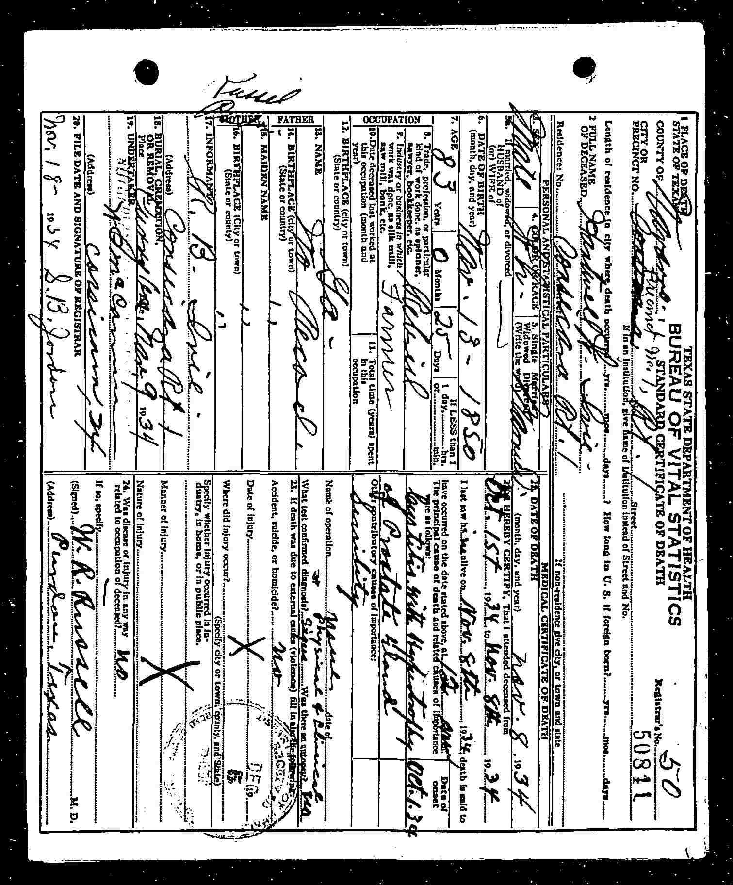 Hope Arkansas; s/o Simeon Ivie & Lucinda Jane (Jenkins) Ivie