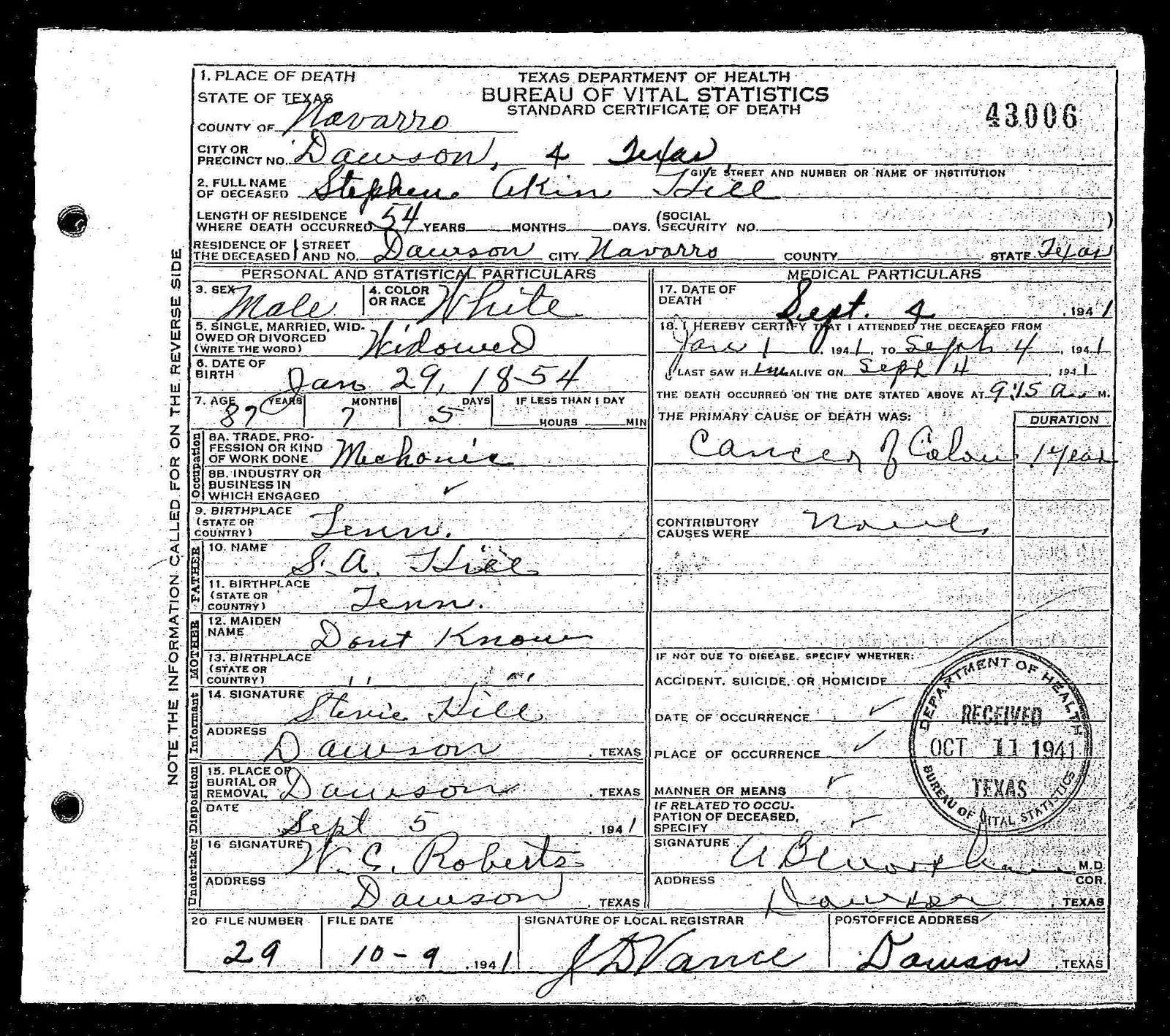 h/o Mamie Leona (Wright) Hull; s/o John James Hull & Josephine (Heaton) Hull |