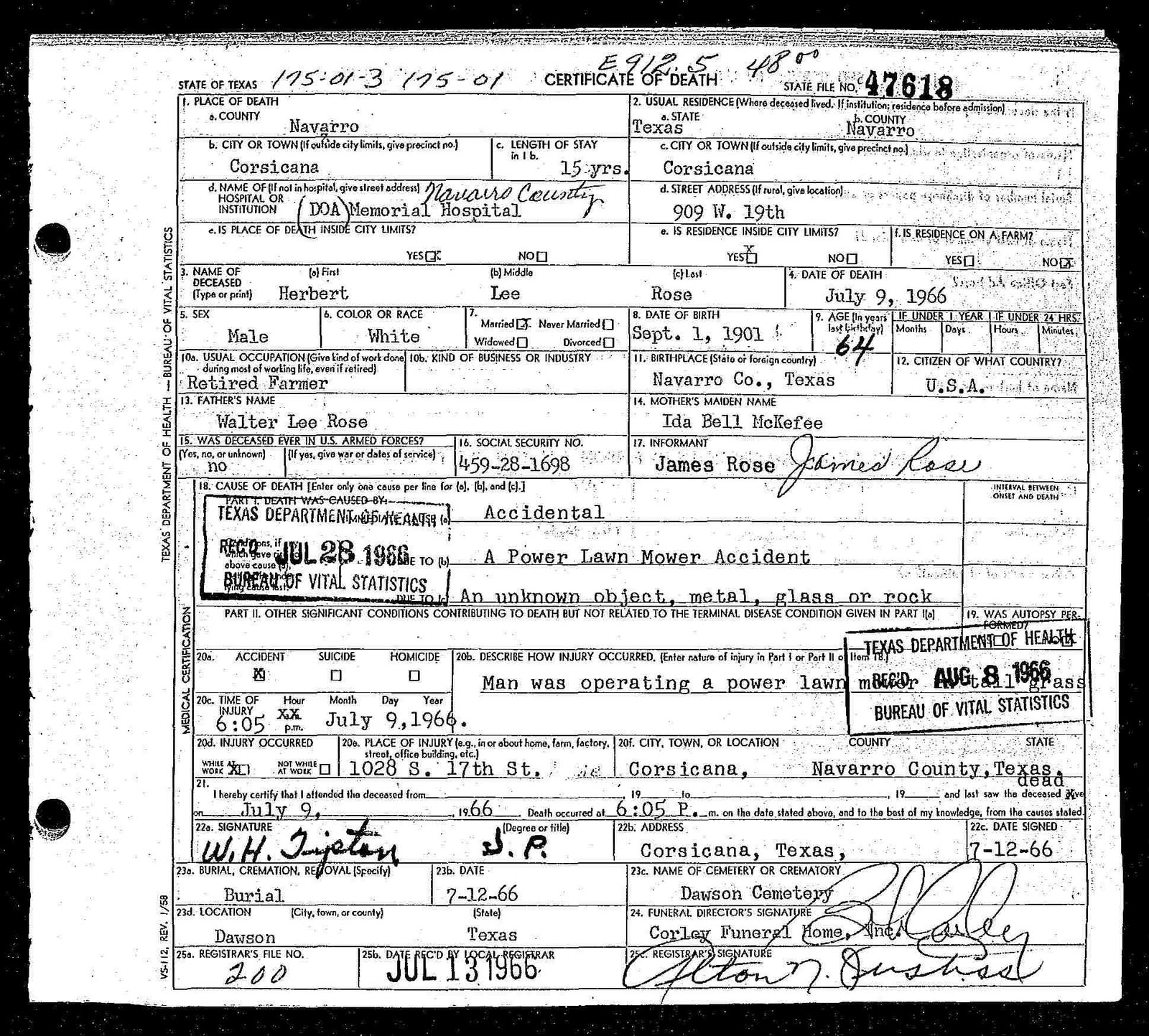 h/o Jessie Mae (Parker) Robinson; s/o Henry Thomas Robertson