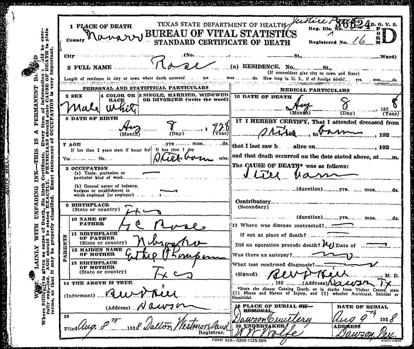 d/o Charles Milton Dawson & Mattie