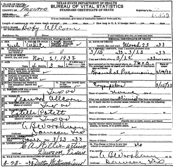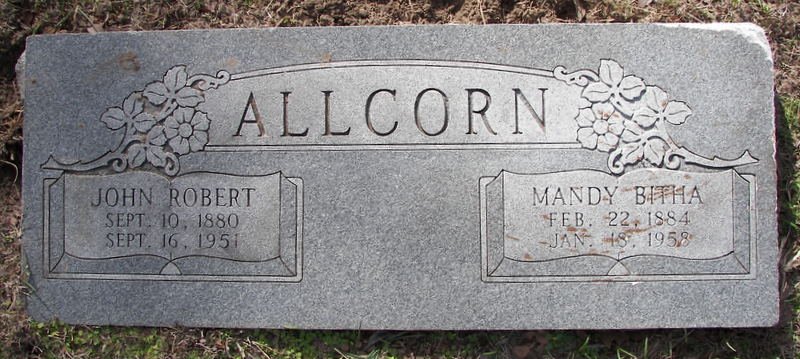 h/o Mandy Bitha (Beasley) Allcorn, married Mar 14, 1917