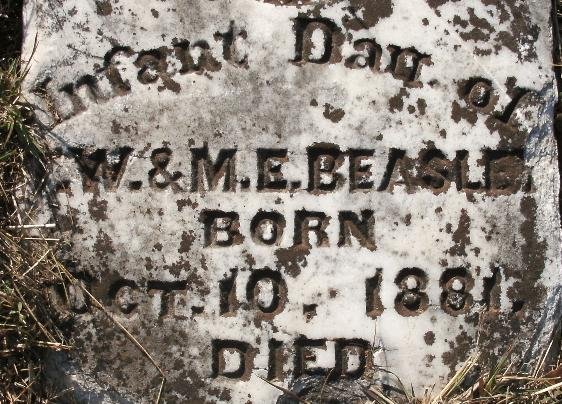 Must be the child of Thomas W. Beasley and his first wife, Mary E. Beasley because of the dates. He died on Oct. 13, 1881 |