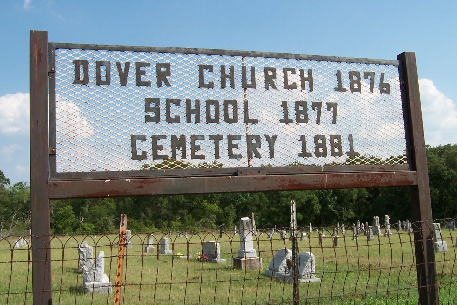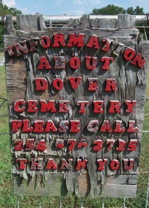 cemetery is still accepting burials. The following information is on a sign at the cemetery: Dover Church 1876, Dover School 1877, Dover Cemetery 1881.