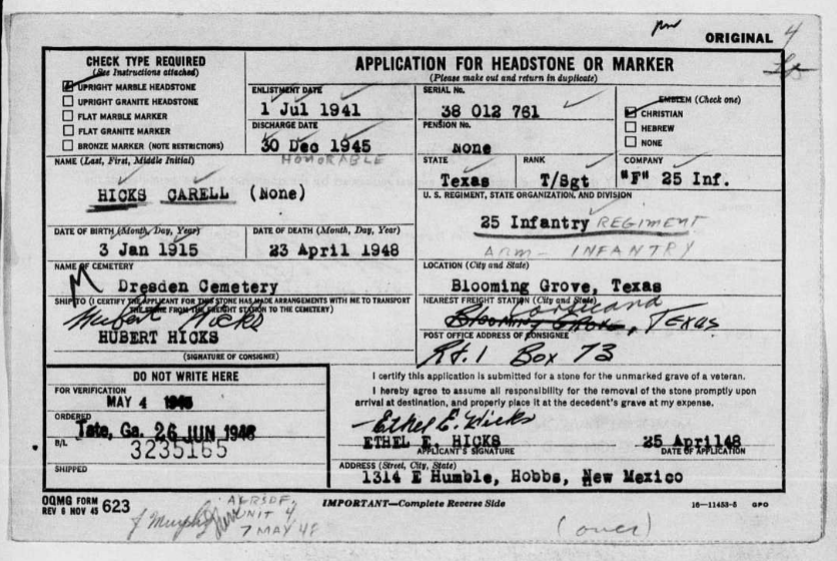 Texas—Tech Sgt. 25th inf. WWII