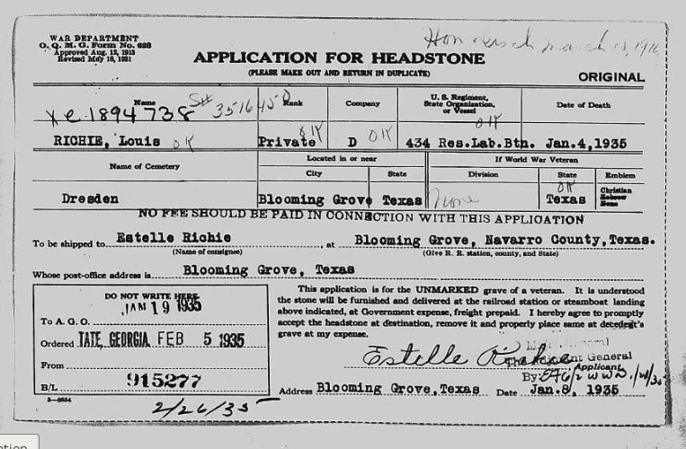 h/o Estelle Richie; s/o Ben Richie & Mattie (Gooden) Richie