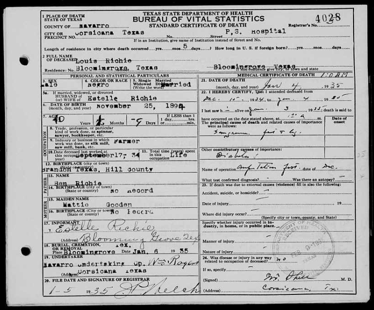 Source: Texas Death Certificate #17644 |