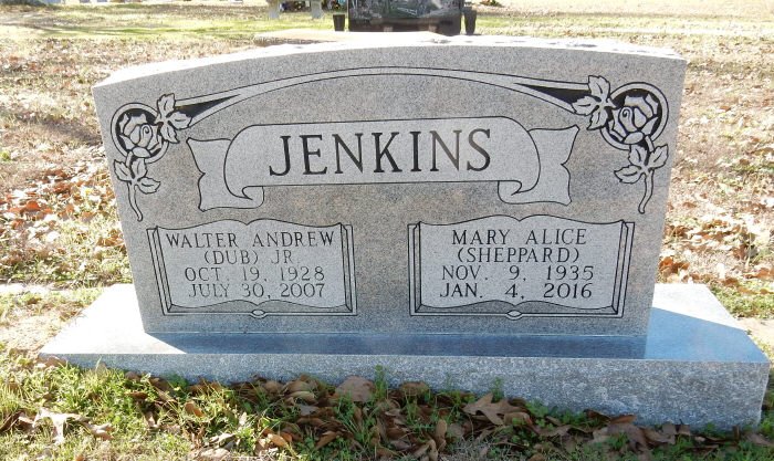 w/o Walter Andrew "Dub" Jenkins, Jr.; d/o Wylie Absalom Sheppard
