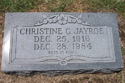 w/o Roland Arnold Jayroe; d/o William Harrison Greenlee & Willie