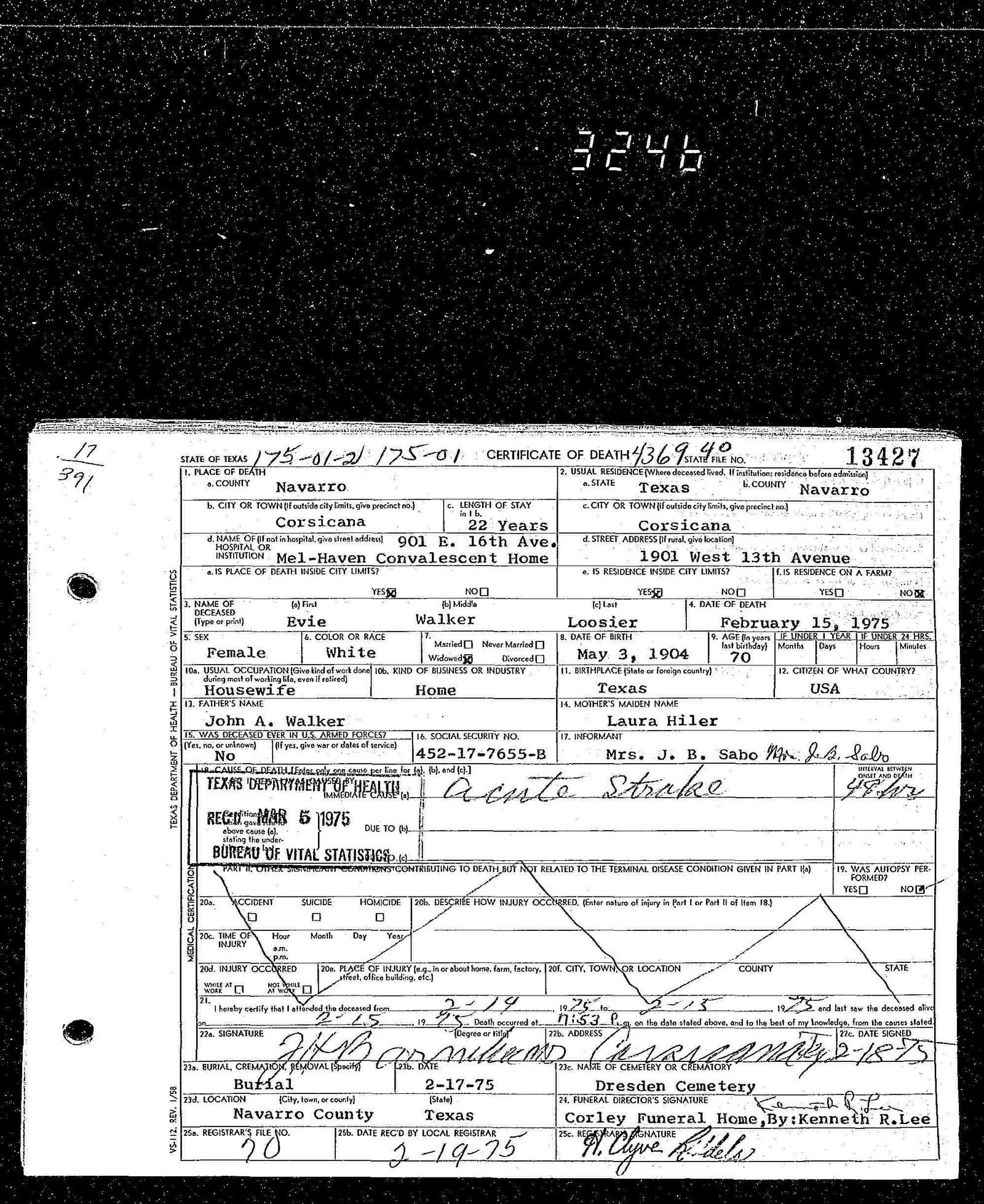 Death Certificate;