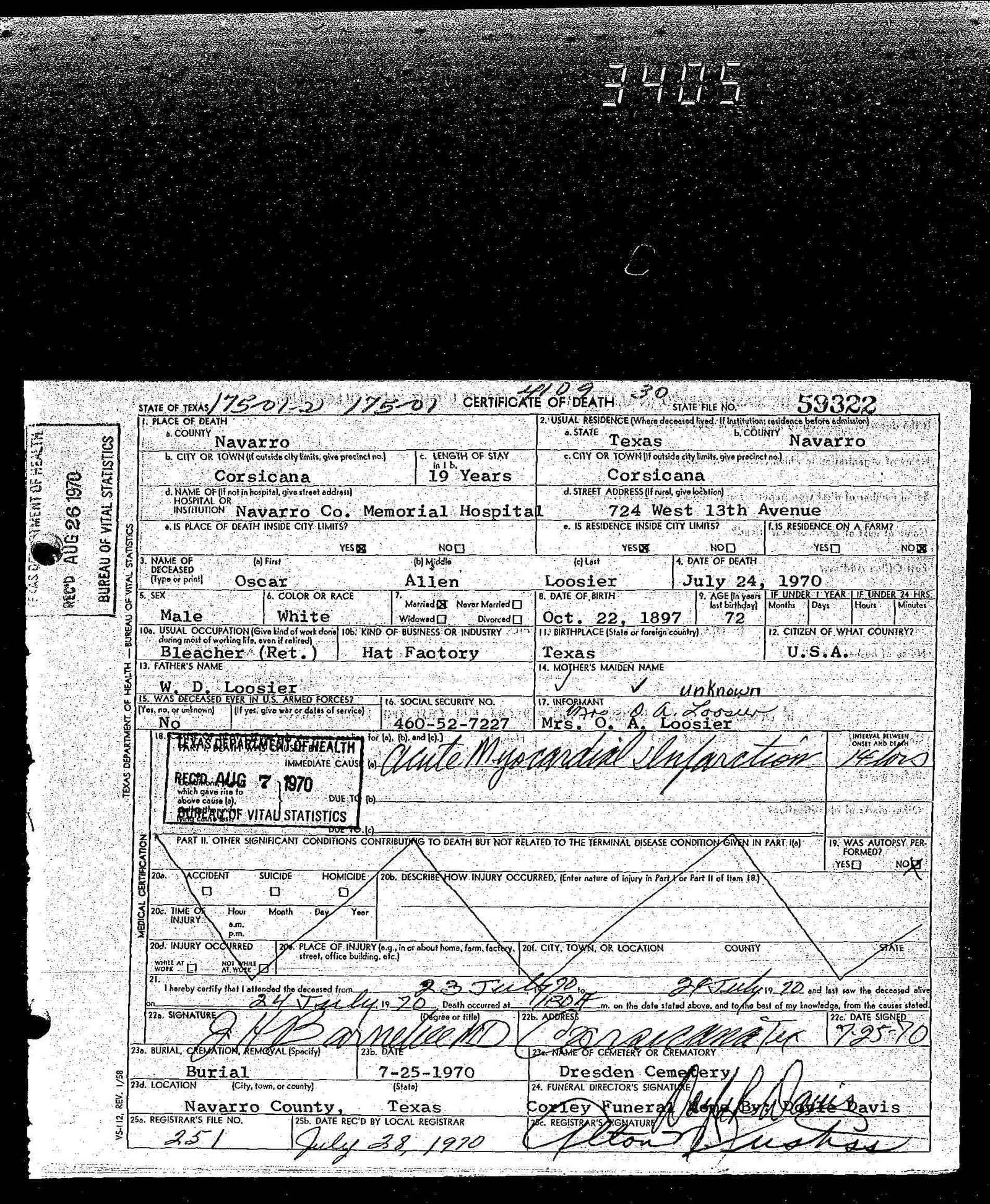 [bur at Oakwood Cemetery, Waco, TX]