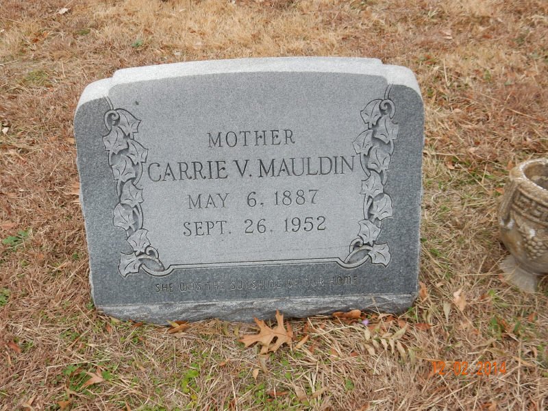w/o Robert Caldwell Mabry, Sr.; d/o Benjamin Franklin Carroll, Sr. & Huldah (Harper) Carroll