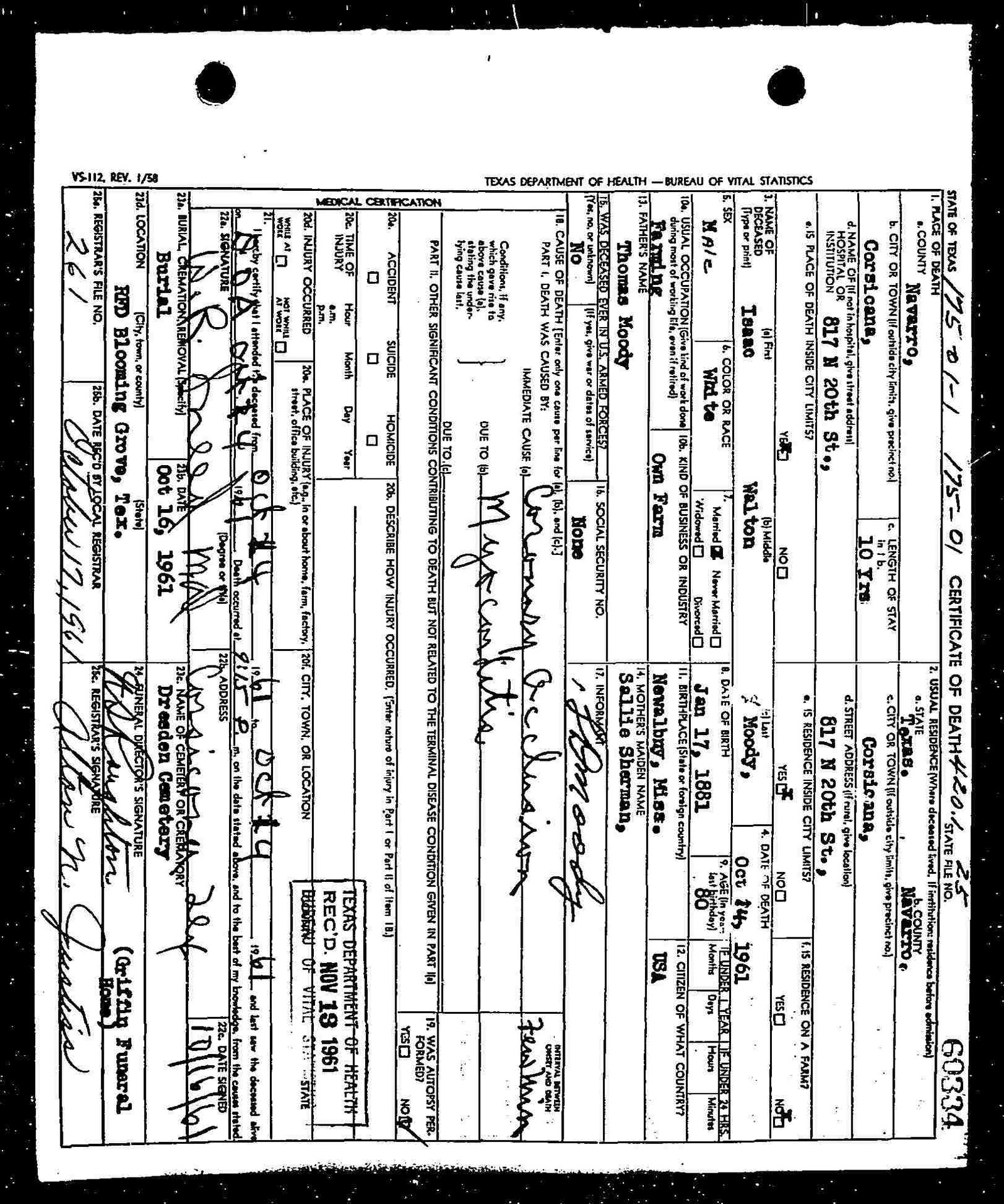 MOSLEY and SHE IS MOSLEY ON HER DEATH CERT AND TXDI |