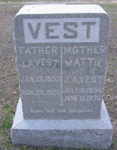 w/o James Edward "Edd" Vest; d/o G. Sparkman