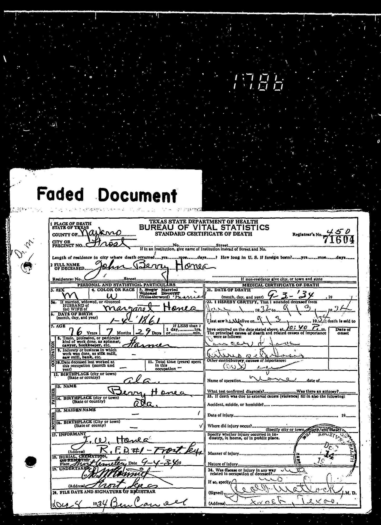 h/o Shirley (UNKNOWN) Haney; s/o Moses Haney & Margaret