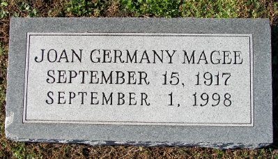 w/o Fabrian Lee Magee; d/o Samuel Lafayette Germany Jr. & Alma Juel (Hooser) Germany-Goodwin