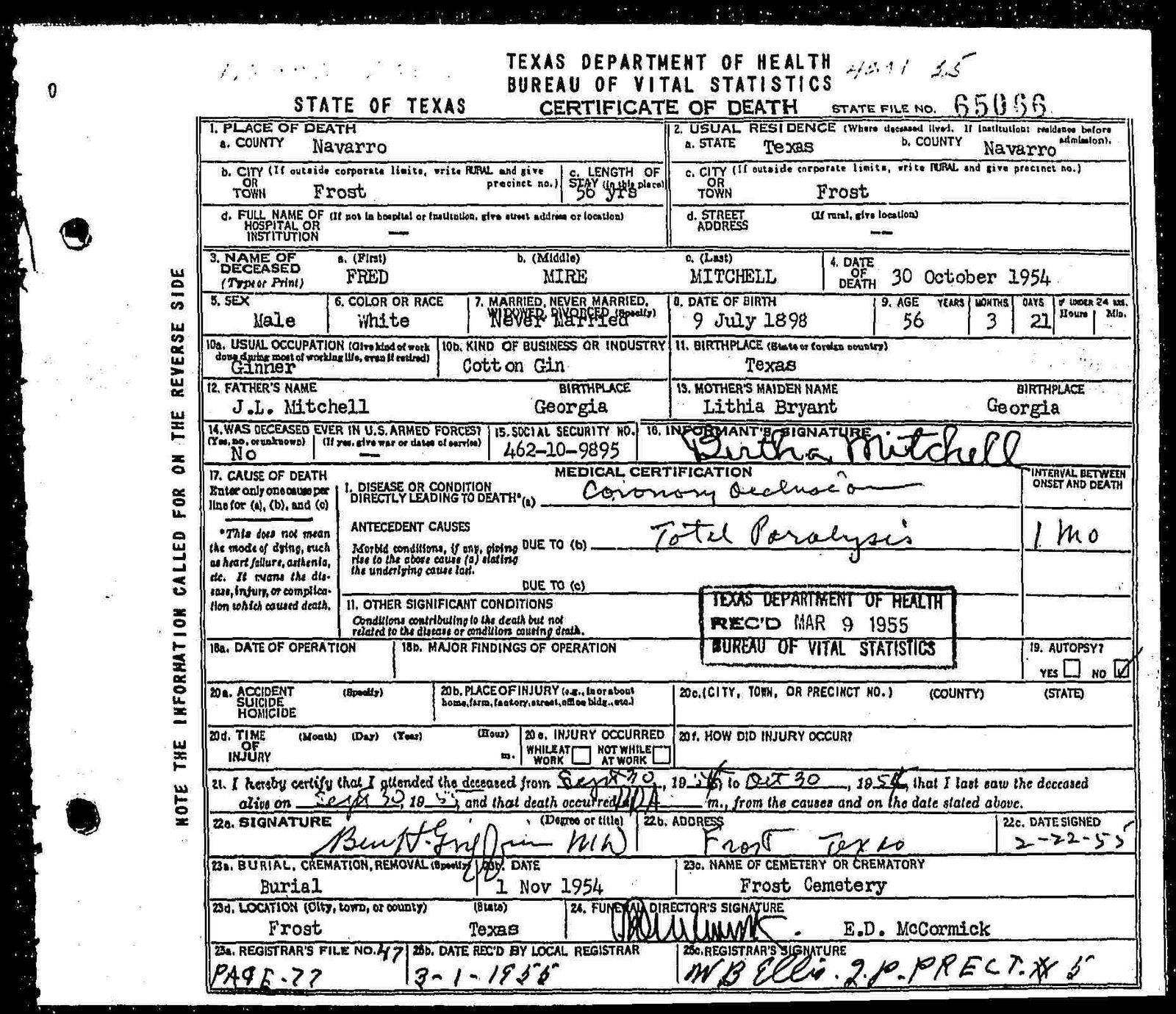 and Mary Freda (Sonneberg) Muesse (obit says buried in Frost cemetery,