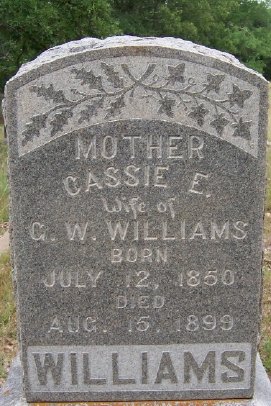 w/o Silas Quitman Williams Sr; d/o Eli Cornwell &