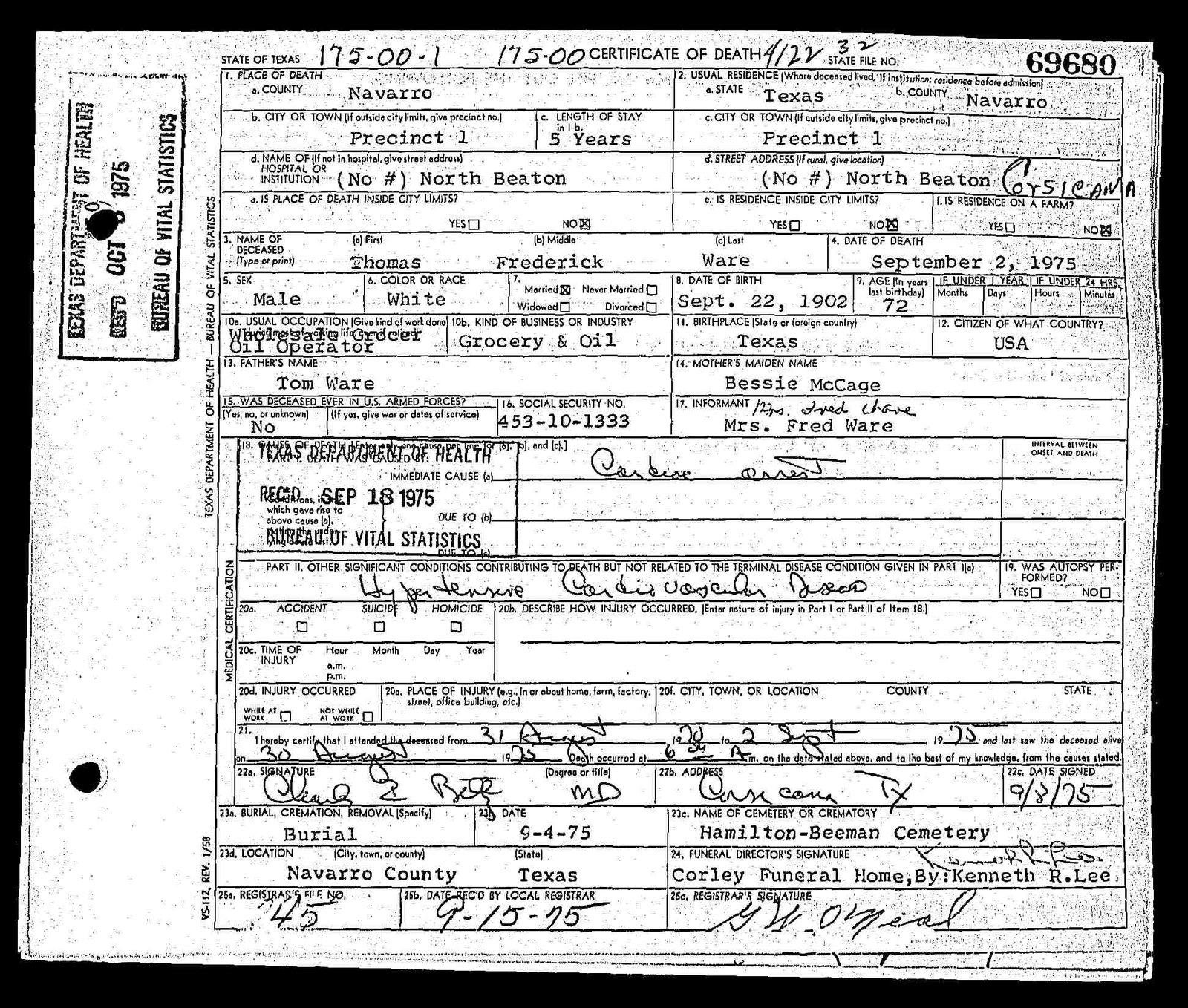 Wright; s/o Samuel Nathan Wright & Mary Dee (Cathey)