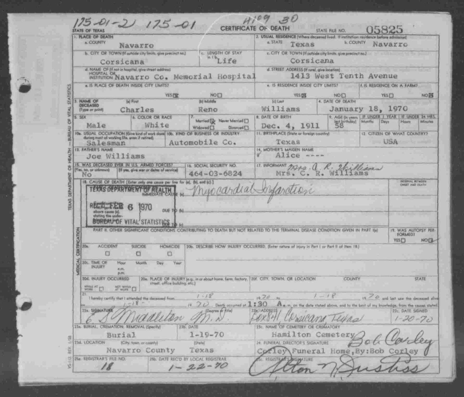 h/o Aleen C. (Hayes) Wright; s/o Connie Alvatice