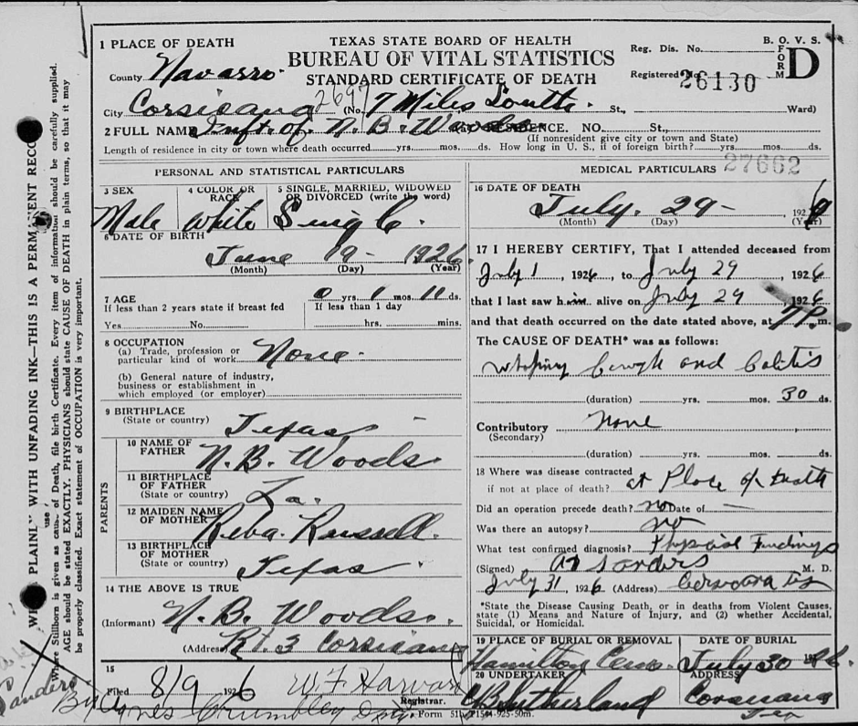 s/o Norman Benjamin Woods & Reba (Russell) Woods |