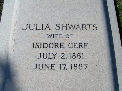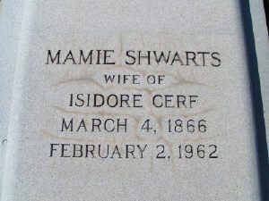 w/o Isidore Cerf; d/o Aaron Shwarts & Caroline (Zander) Shwarts