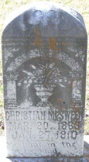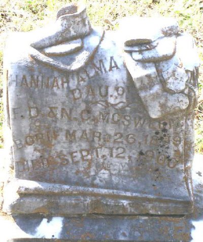 w/o Findley Donald McSween, married Apr 3, 1879; d/o Aaron Terrell Barton & Hannah (Griffin) Barton