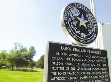 A Historic Texas Cemetery marker at Long Prairie Cemetery south of