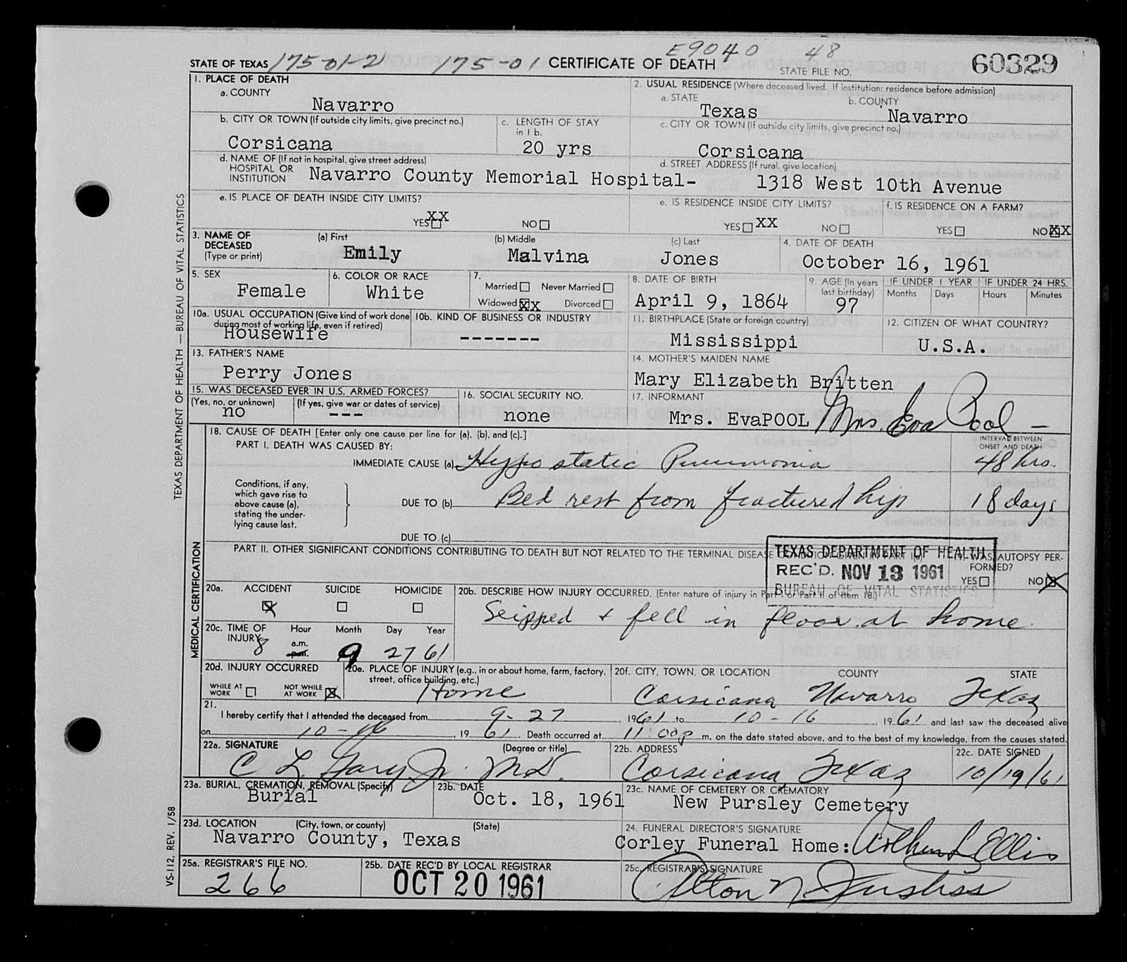 (Richards) Banks (death cert. says buried at Dresden) |