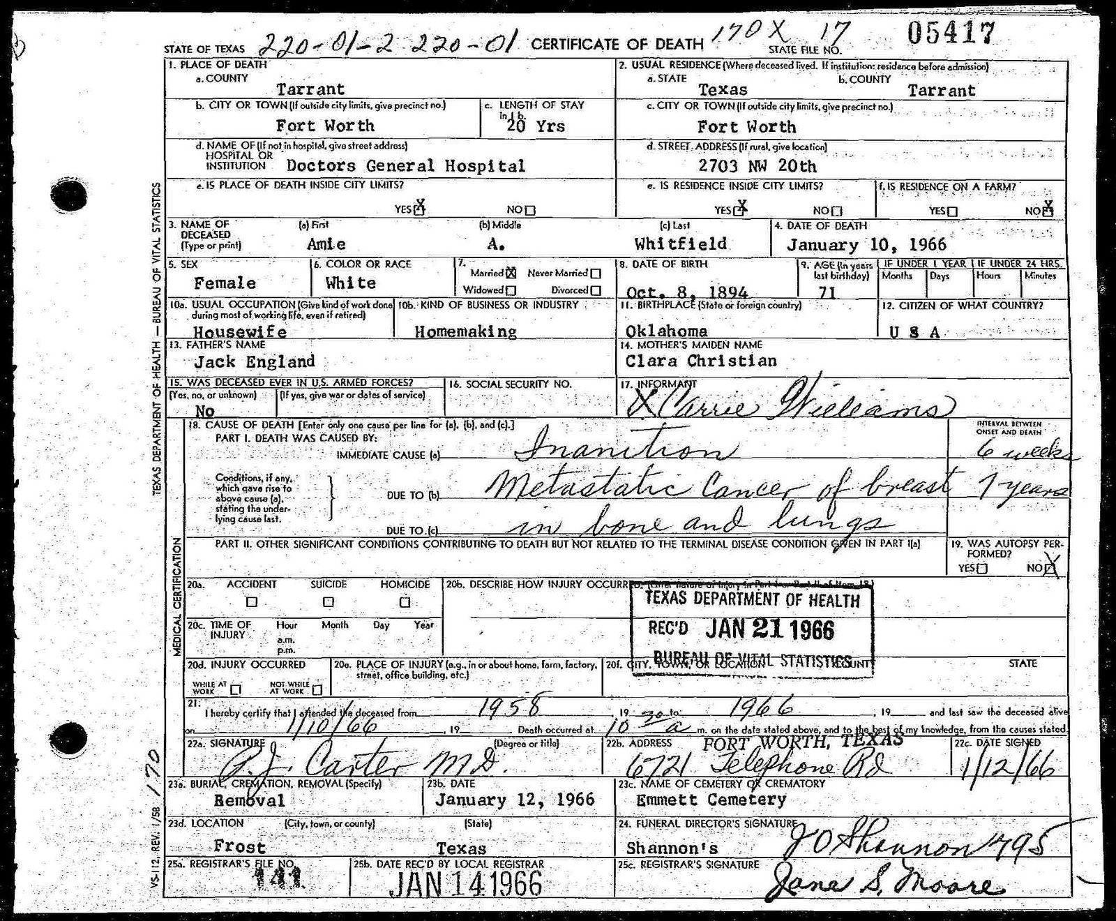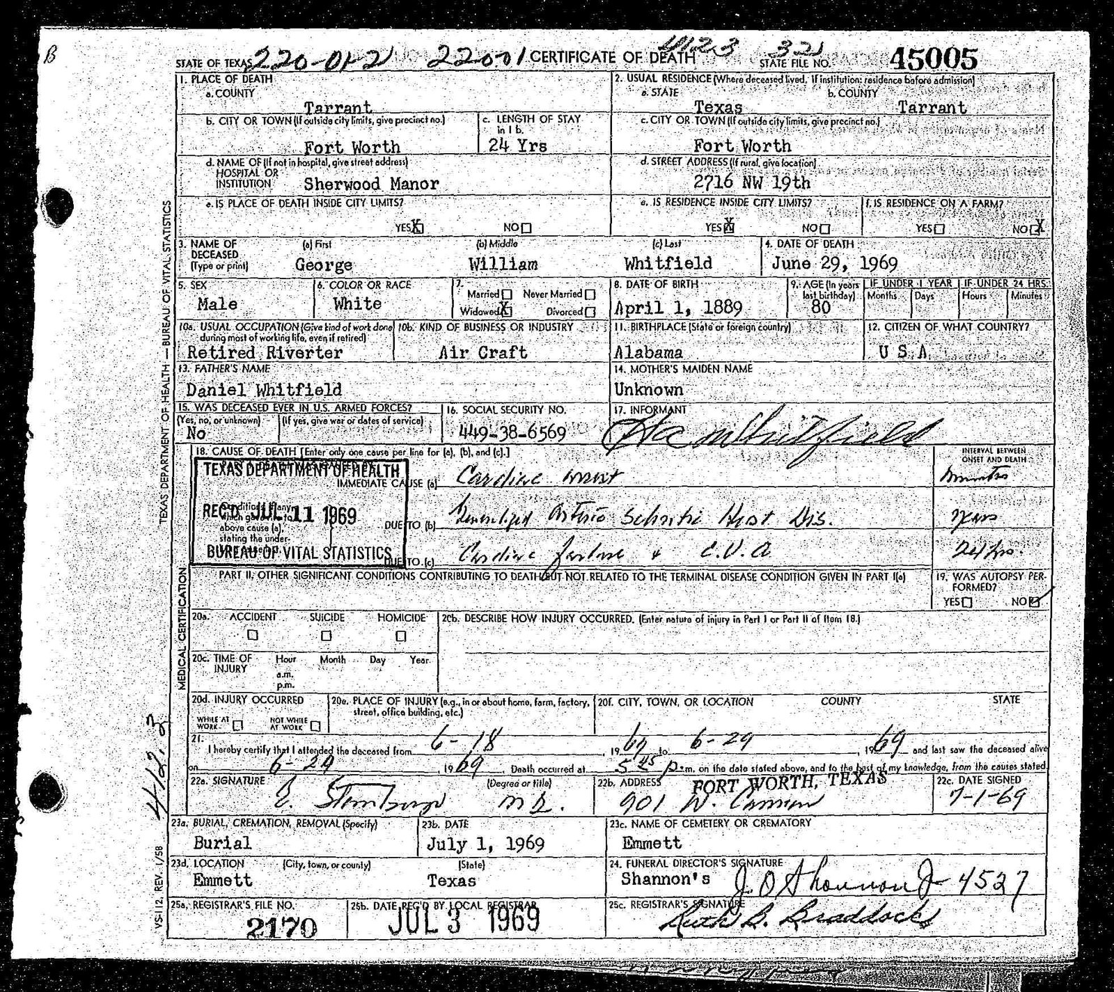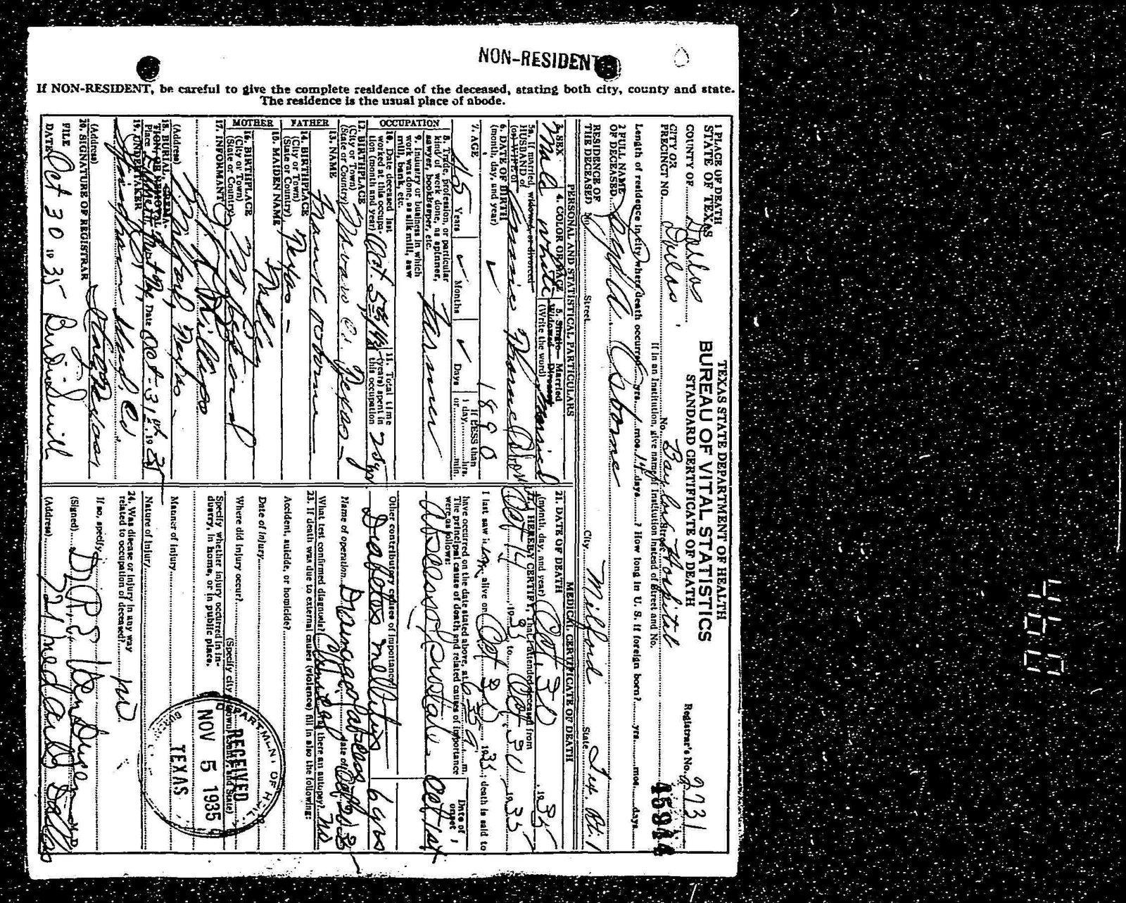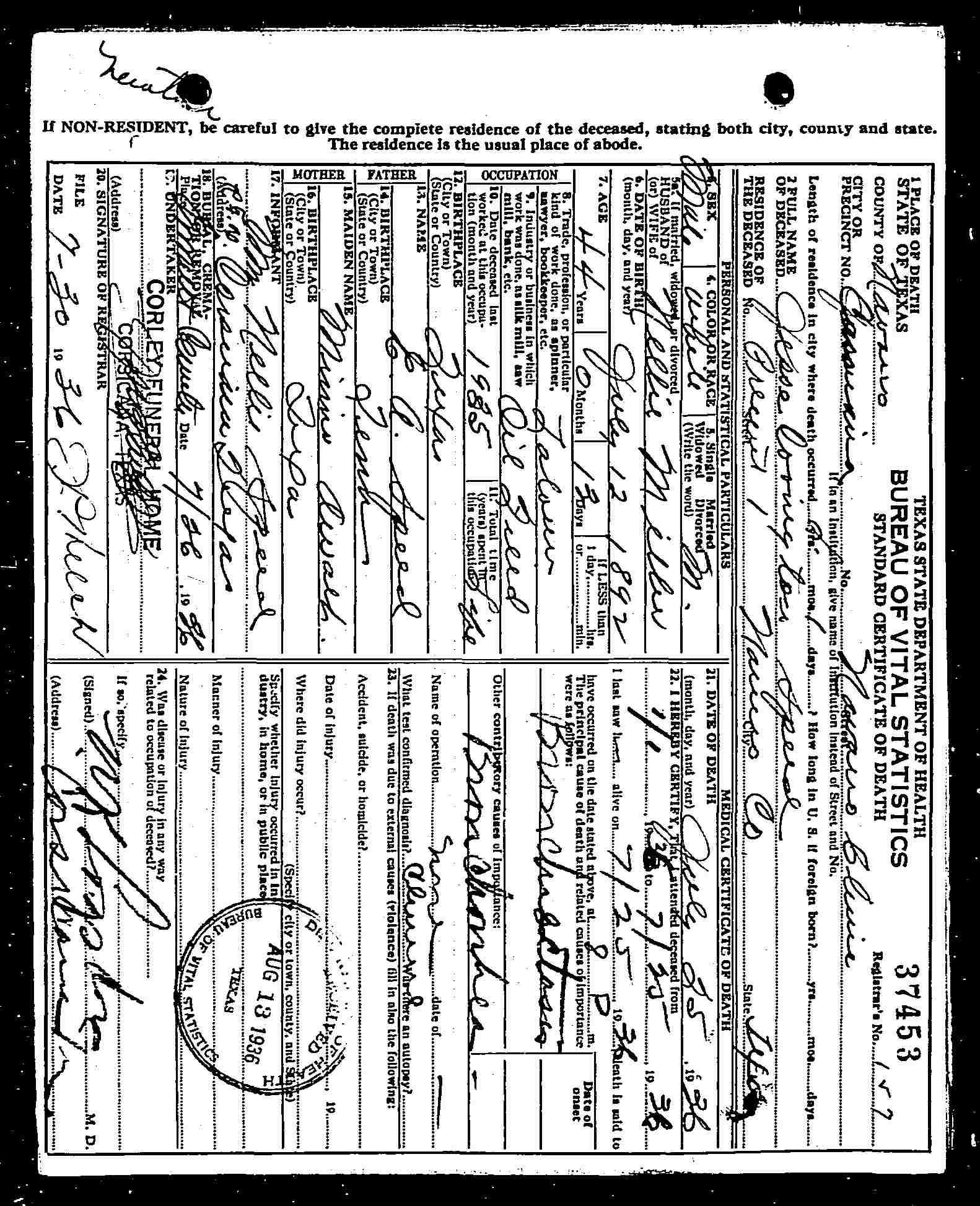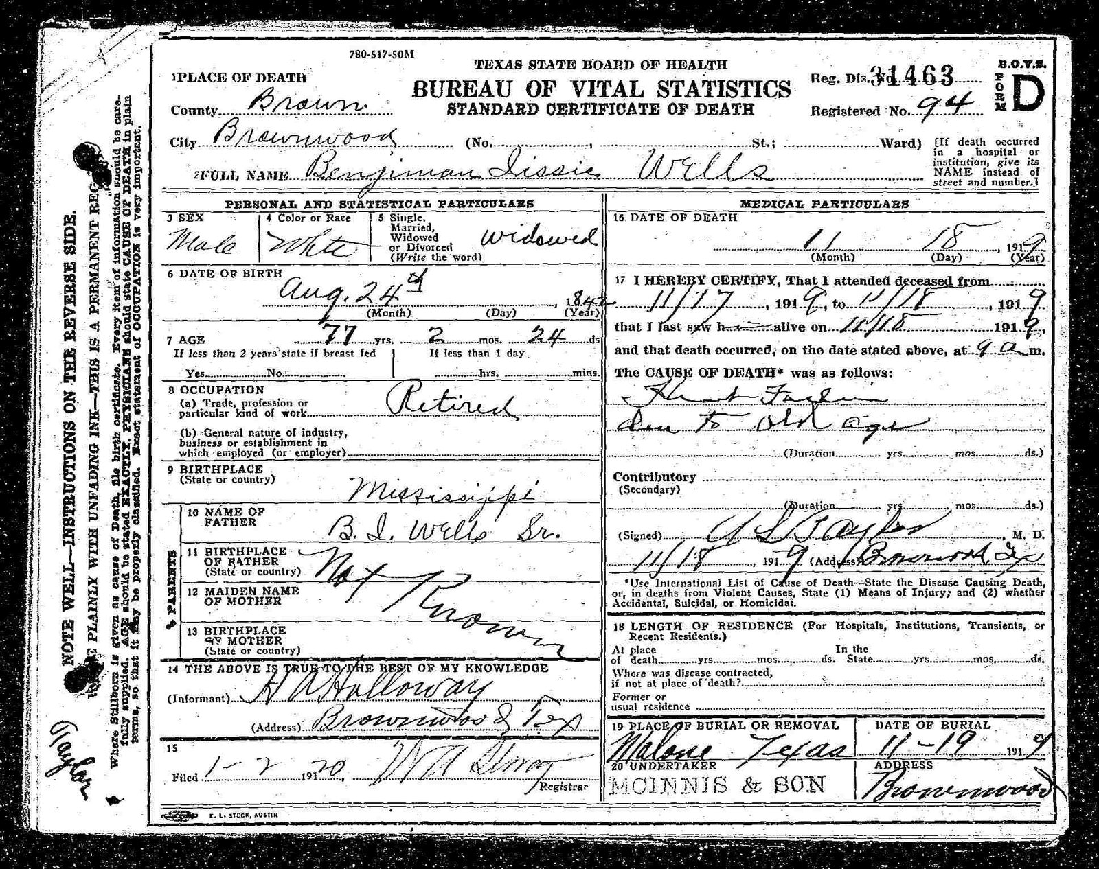 b. in Jasper Co. MS d. Mexia, Limestone Co., TX