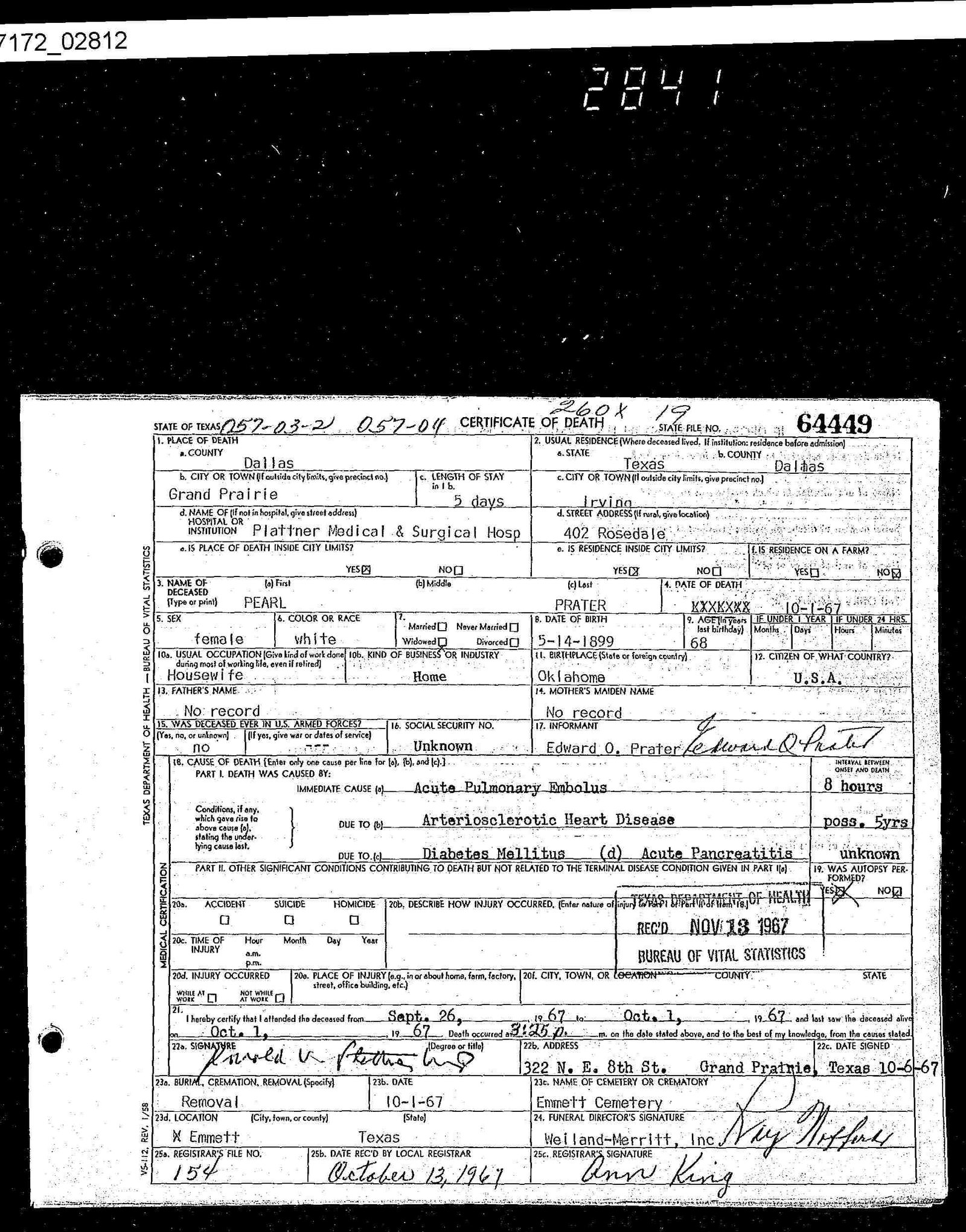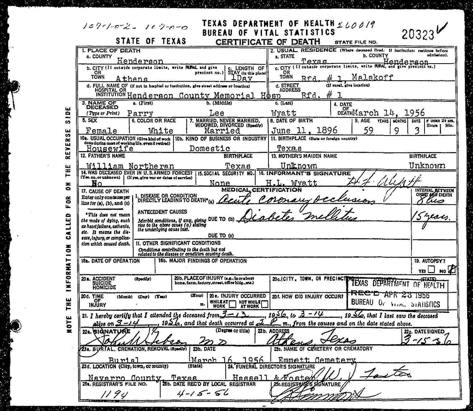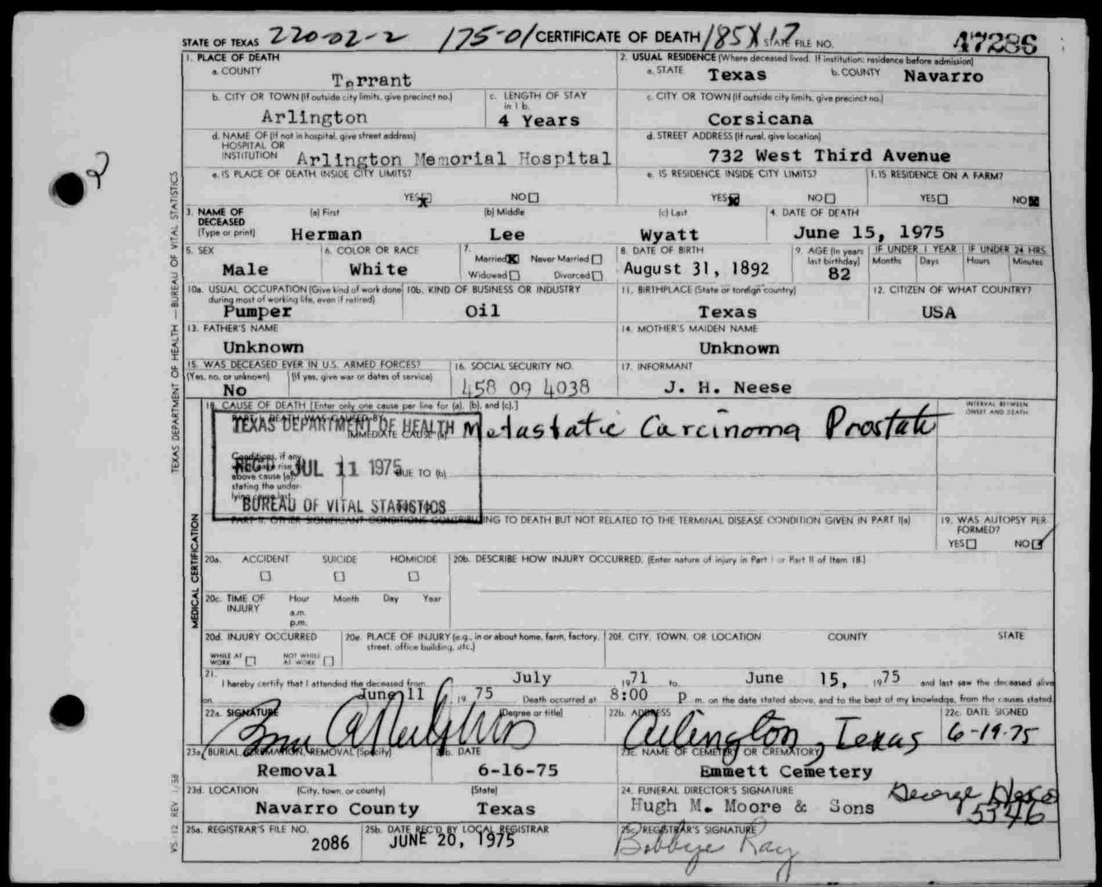 Wyatt Laid to rest Mar 1, 1919 per church records |